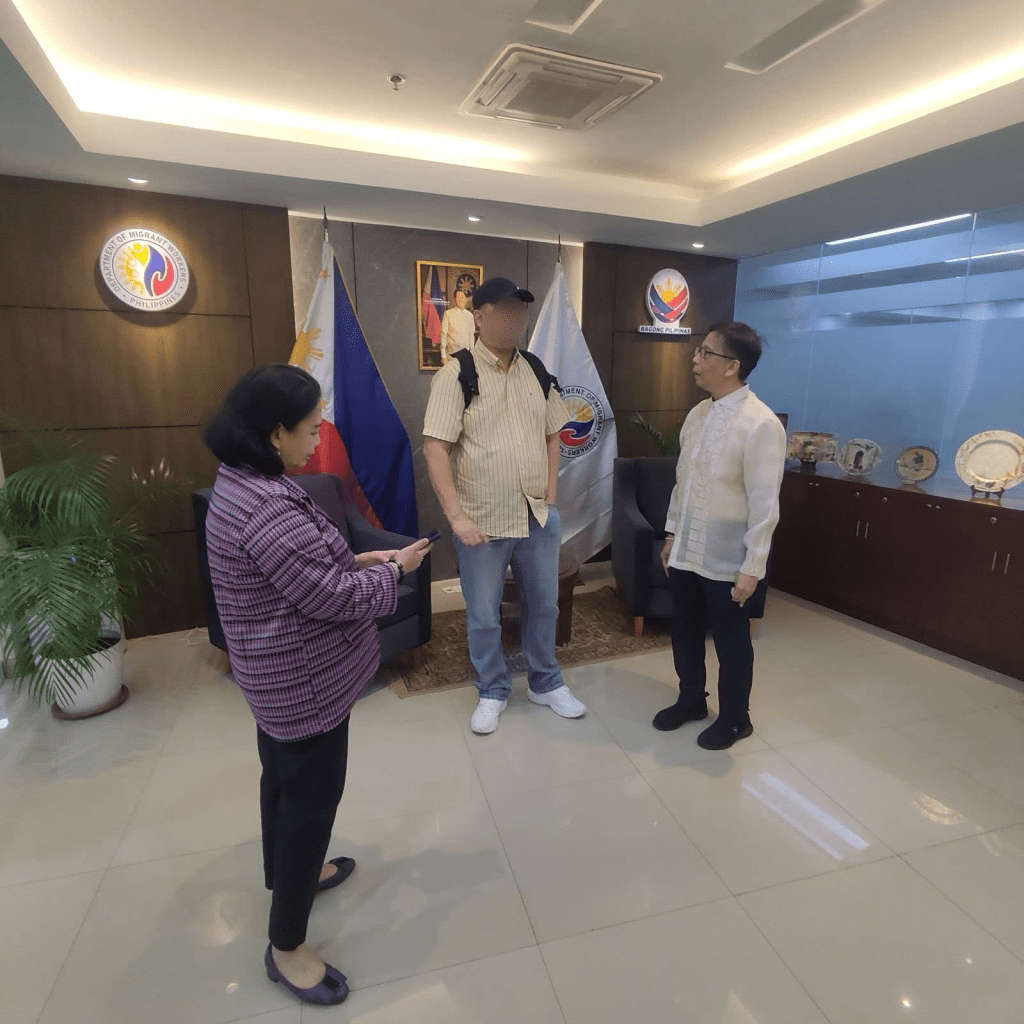 The OFW was repatriated to the Philippines on the evening of June 10 and personally received by Secretary Cacdac at the DMW Central Office on June 11. He is now temporarily staying at a hotel in Pasay City under the care of OWWA while awaiting his return to his hometown in Butuan City.