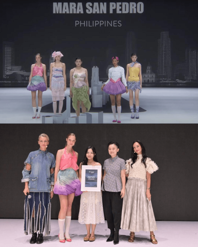 Filipino creativity was further recognized at the Redress Design Award 2025, where Mara San Pedro won the People’s Choice Award for her zero-waste womenswear collection crafted from upcycled native textiles, including piña and abaca silk.