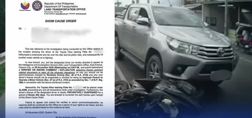 In addition to the 90-day preventive suspension, the LTO also issued a Show Cause Order (SCO) against the registered owner of the Toyota Hilux with plate number CAE 9448, directing them to attend a hearing and explain why they should not face charges for reckless driving and possible license revocation “for being an improper person to operate a motor vehicle.”