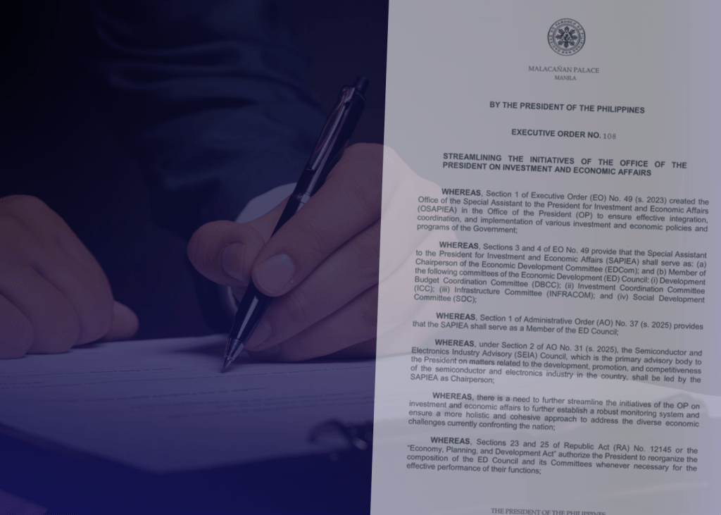 The SAPIEA also formerly chaired the Semiconductor and Electronics Industry Advisory (SEIA) Council, the President’s key advisory body on the semiconductor and electronics industry under Administrative Order No. 31 issued in 2025. EO 108 transfers this role to the Executive Secretary.