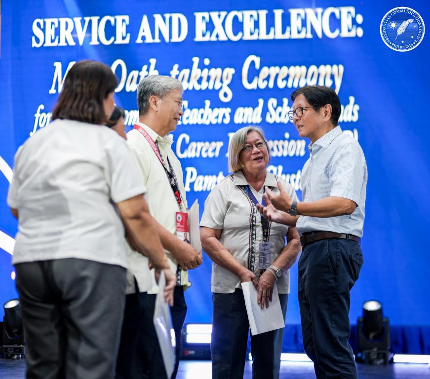 The President also thanked officials present at the ceremony, including former President and now Pampanga 2nd District Representative Gloria Macapagal Arroyo and Education Secretary Juan Edgardo Angara, who administered the oath-taking under the Expanded Career Progression (ECP) system. This was the third mass oath-taking since the program began.