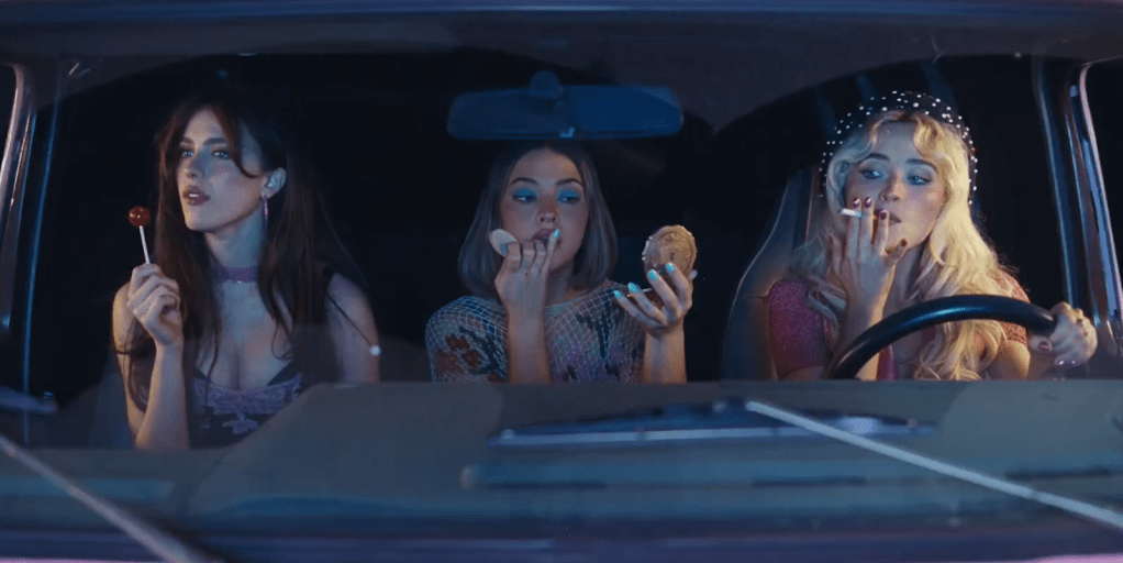 Carpenter teased the upcoming video in a post on X (formerly Twitter), sharing a 23-second clip showing her driving a car while smoking a cigarette alongside two friends. In the teaser, one of them asks, “Should we go in the back door?” to which Carpenter and another companion reply, “No.”